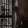 Description: Jyn sitting in Imperial prison, looking away from the camera towards the bars.
